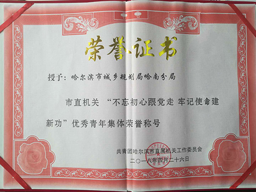 哈尔滨市城乡规划局哈南分局在此次评选中荣获共青团哈尔滨市直属机关工作委员会授予的市直机关“不忘初心跟党走 牢记使命建新功”优秀青年集体荣誉称号。
